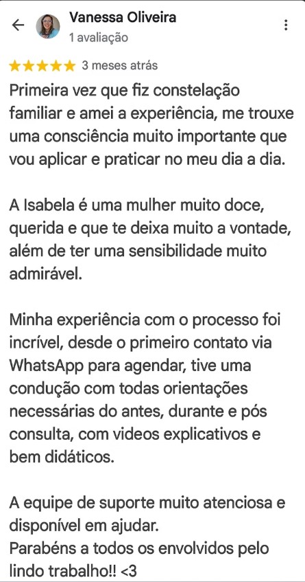 Lembre-se de que, como qualquer abordagem diagnóstica/terapêutica, a Constelação Familiar pode não ser adequada para todos e os benefícios podem variar de pessoa para pessoa.